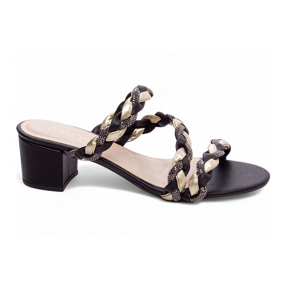 Material: Napa Preto / Napa Metalizado Ouro Ligth / Manta de Strass na cor Grafite;
